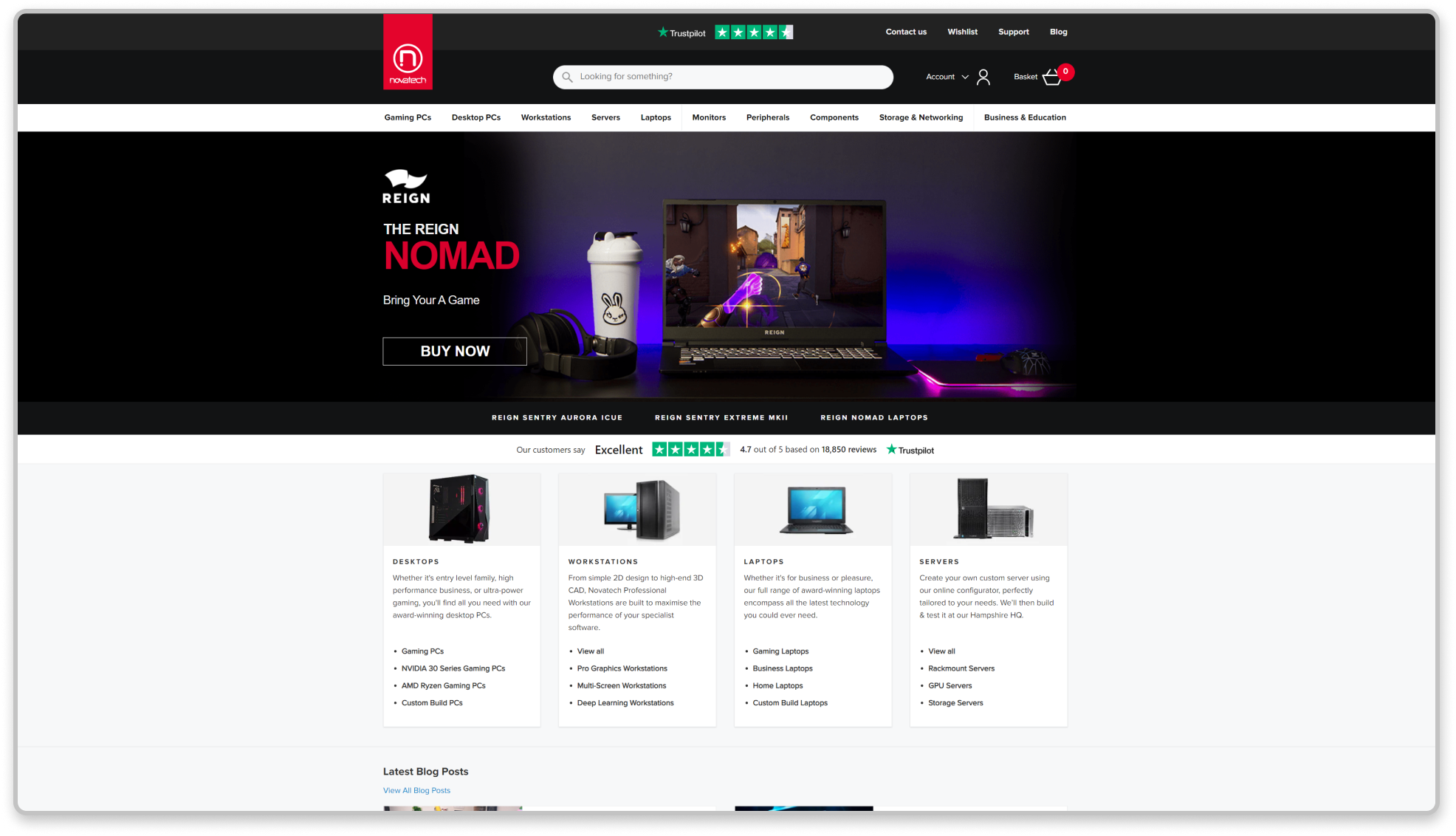 Novatech’s website was primarily designed for consumer sales. PC parts, accessories, and gaming systems. However, a growing share of revenue was coming from enterprise clients across defence, education, and tech sectors. My task was to redesign the site experience to highlight the B2B offering, surface flagship products like Direct2Desk, and help the business attract and convert larger clients through digital channels rather than outbound sales alone.